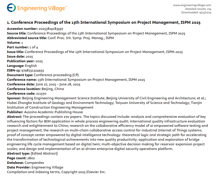 ISPM 2025 proceedings has been indexed by EI Compendex: